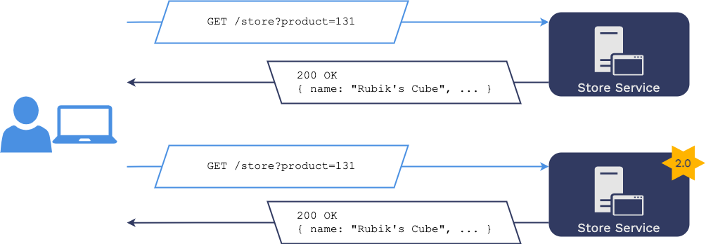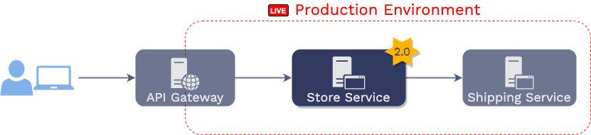 original version of the “store service” running in production. Then,