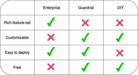 We designed Guardrail to solve the current use case we envisioned.