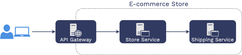 an API gateway, which then issues HTTP requests to the “store