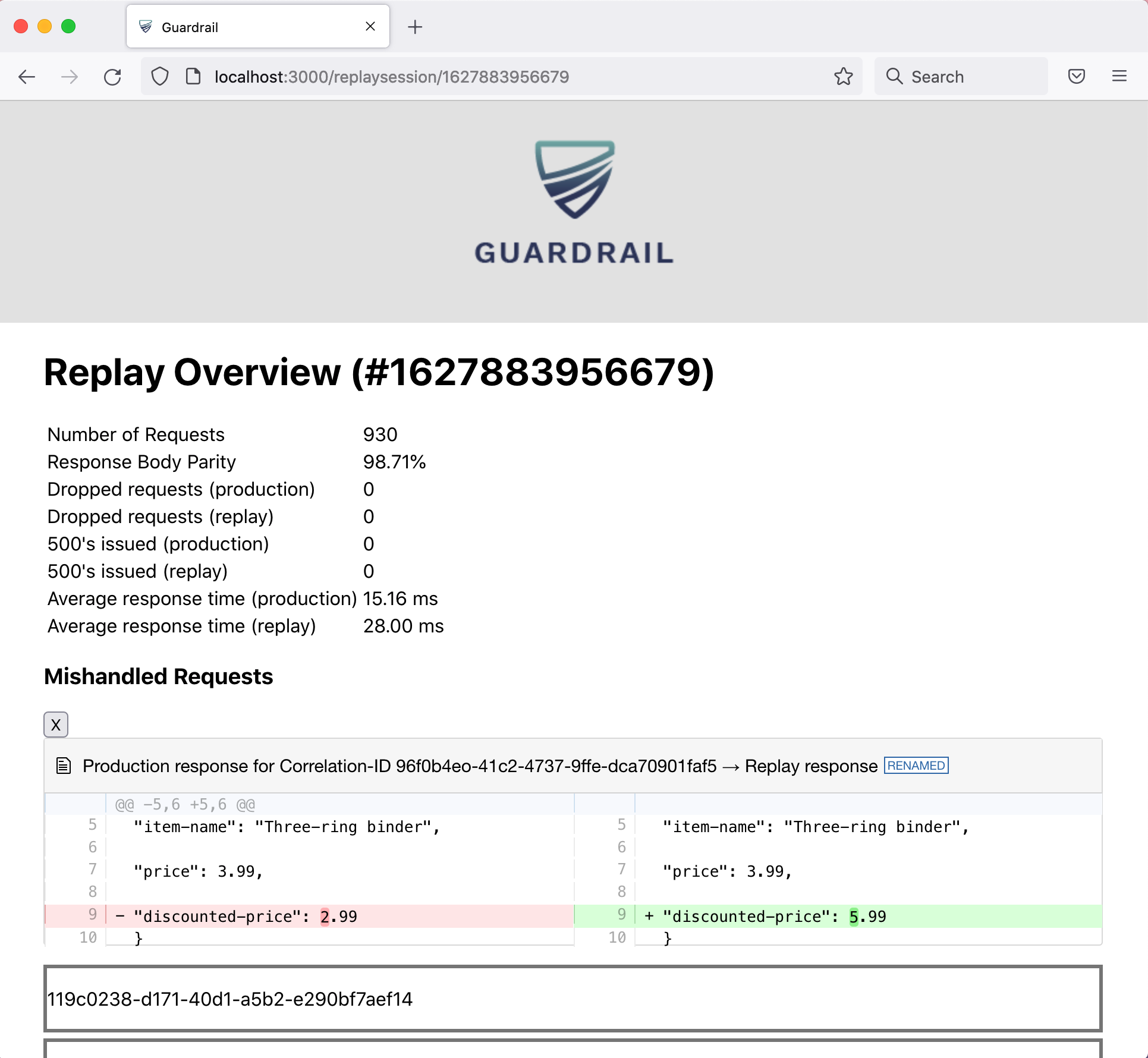 The replayed response from staging (what our service under test